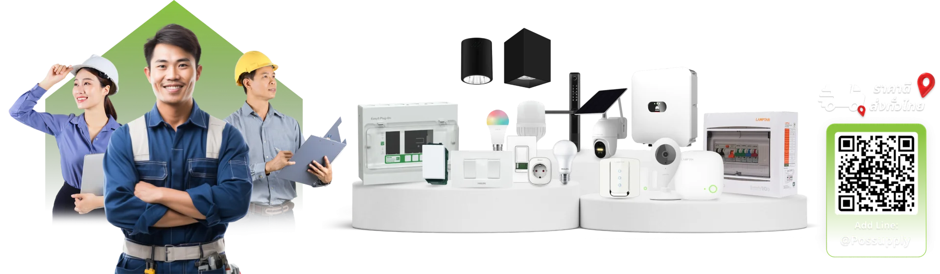 เราเป็นทีมงานที่มุ่งมั่นทำให้ทุกบ้านและทุกโครงการ “สะดวกสบาย ปลอดภัย และประหยัดพลังงานมากขึ้น” ด้วยบริการด้าน Smart Home Solution, จำหน่ายอุปกรณ์ไฟฟ้า, และ งานก่อสร้างครบวงจร ที่ดูแลทุกขั้นตอน ด้วยความใส่ใจ บริษัท พอสซัพพลาย จำกัด คือ บริษัทขายอุปกรณ์ไฟฟ้า และให้บริการ ติดตั้งอุปกรณ์ไฟฟ้า สำหรับบ้าน อาคาร และโครงการขนาดใหญ่ พร้อมทีมช่างผู้เชี่ยวชาญที่เลือกใช้เฉพาะ วัสดุไฟฟ้า คุณภาพสูง เพื่อให้ทุกงานเป็นไปอย่างปลอดภัยและได้มาตรฐาน